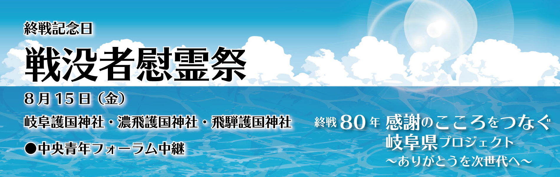 終戦記念日の8月15日、岐阜県下3つの神社で行われる戦没者慰霊祭へのご案内