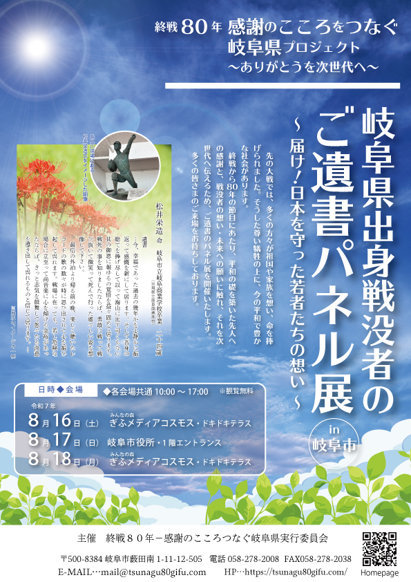 岐阜県出身の戦没者の方々のご遺書をパネルにして、県民の皆様にご覧いただく企画が具体化しつつあります。