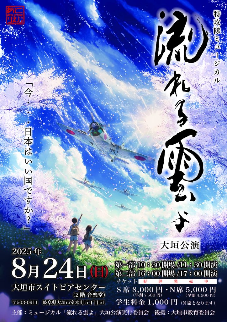 鹿児島県の知覧を舞台としたミュージカル「流れる雲よ」は北海道から沖縄まで日本全国で公演を行い、延べ1万人以上の幅広い年齢の方にご好評をいただいております。さらに、ニューヨークやドバイでは英語版を公演し、日本と言う枠組みを超えて「生きる」ことの意味や大切さを伝えてています。
