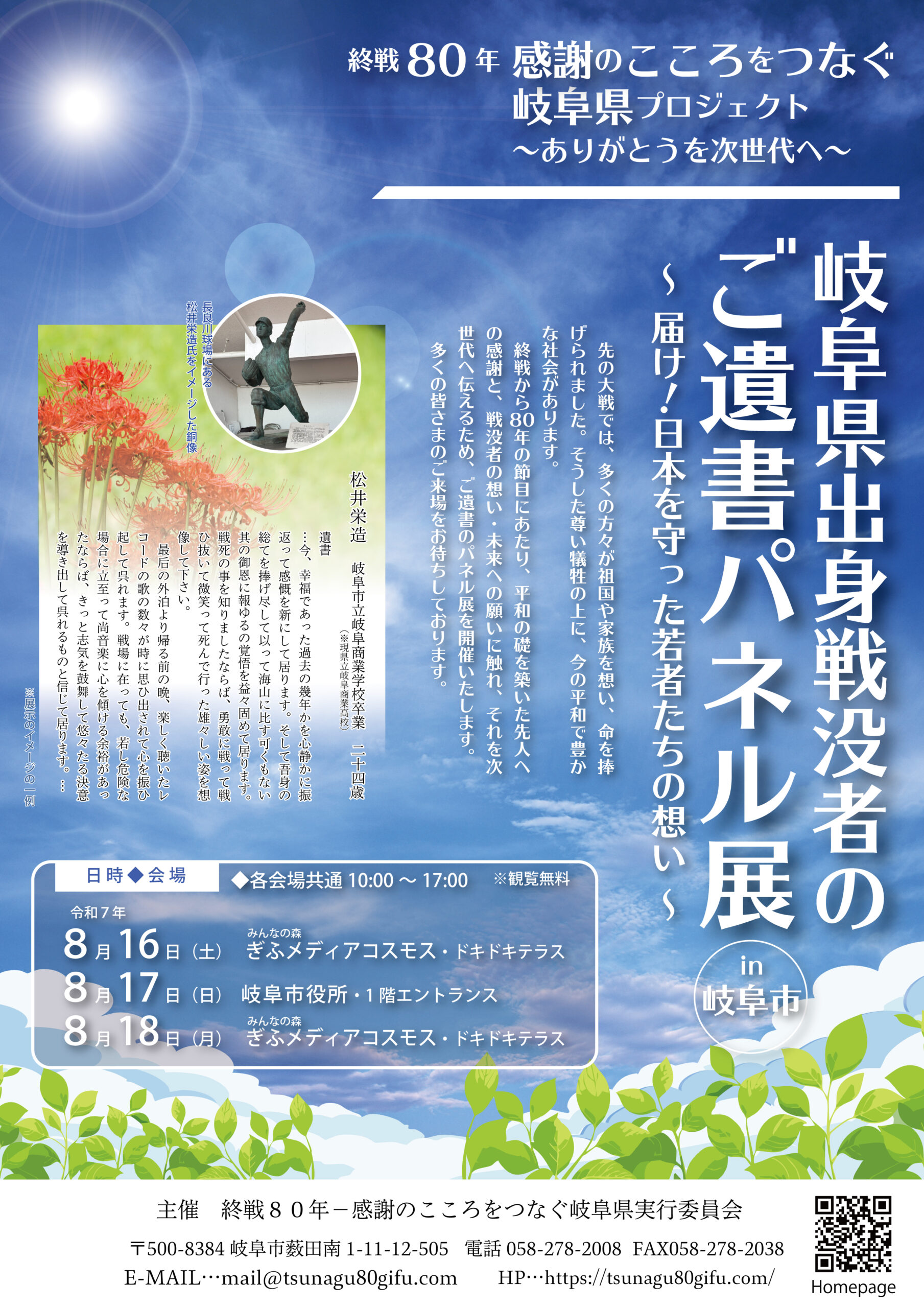 全会場共通:10:00~17:00 ※観覧無料 ※岐阜市後援申請中